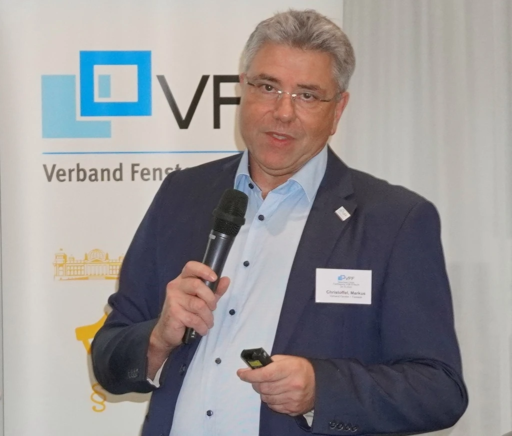 Foto „FT_VOB2023-10_Christoffel“: Markus Christoffel, Baurechtsexperte des VFF, führte durch die Veranstaltung, übernahm die Vorstellung des Praxisberichts von Christian Anders und erläuterte die Neuerungen der VFF-Merkblätter VOB.01 und VOB.02. (Foto: VFF)